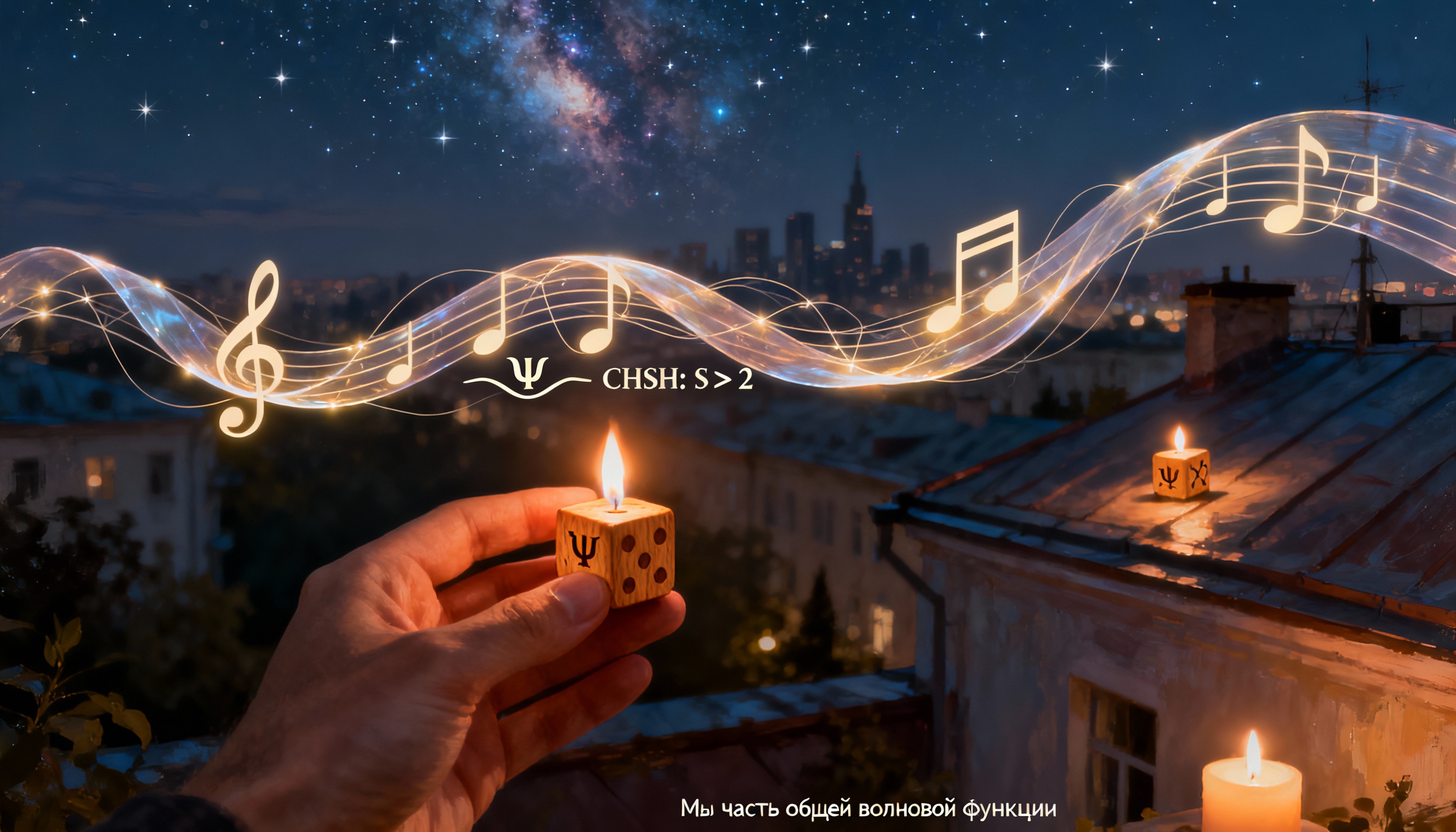 Представьте два кубика, брошенные на противоположных концах Земли, всегда совпадающие за пределами случайности. Представьте два пламени свечи, мерцающие одинаково, хотя одно здесь, а одно в галактиках. Представьте невидимые нити, связывающие искры света в одно полотно. Это дар запутанности — не просто теорема, но приглашение удивляться тому, насколько глубоко мир сшит вместе.