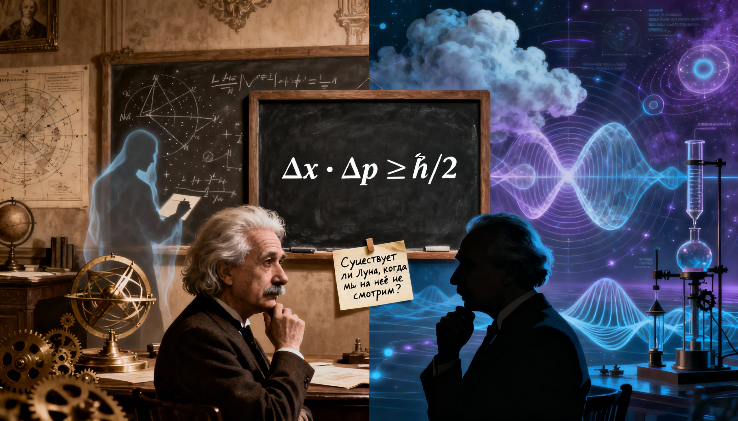 Существует ли Луна, когда мы на неё не смотрим? Этот вопрос, заданный Альбертом Эйнштейном в одной из дискуссий с Нильсом Бором, звучит почти абсурдно. Конечно, существует, скажет любой здравомыслящий человек. Объекты не перестают быть реальными только из-за того, что мы отвернулись от них. Но квантовая механика — и в особенности принцип неопределённости Гейзенберга — заставляет нас пересмотреть столь очевидные утверждения и задуматься о более глубоком вопросе: что вообще означает «существовать» и «знать» в научном смысле?